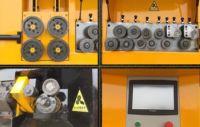 設(shè)備采用CNC伺服控制系統(tǒng),可自動(dòng)完成鋼筋矯直,定尺,彎箍,切斷等工序,能夠彎曲最大直徑12mm鋼筋,